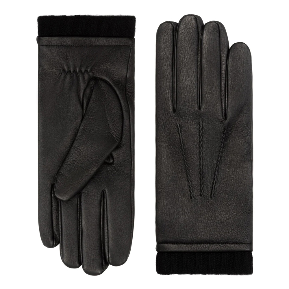 The key feature of these Black Leather Winter Gloves with Knit Cuff is the black knit cuff, designed to hug the wrist and block out wind and cold air. It adds a cozy, layered appearance that enhances warmth while ensuring a secure fit. Unlike bulkier cuffs, the knit fabric remains unobtrusive, allowing you to slide your gloves easily under coat sleeves for a neat and tailored look.