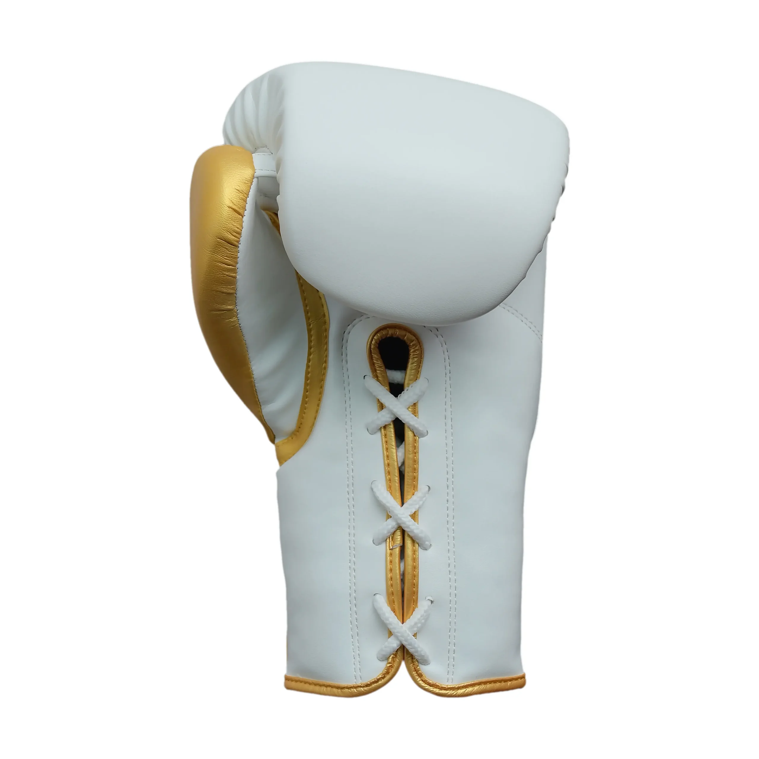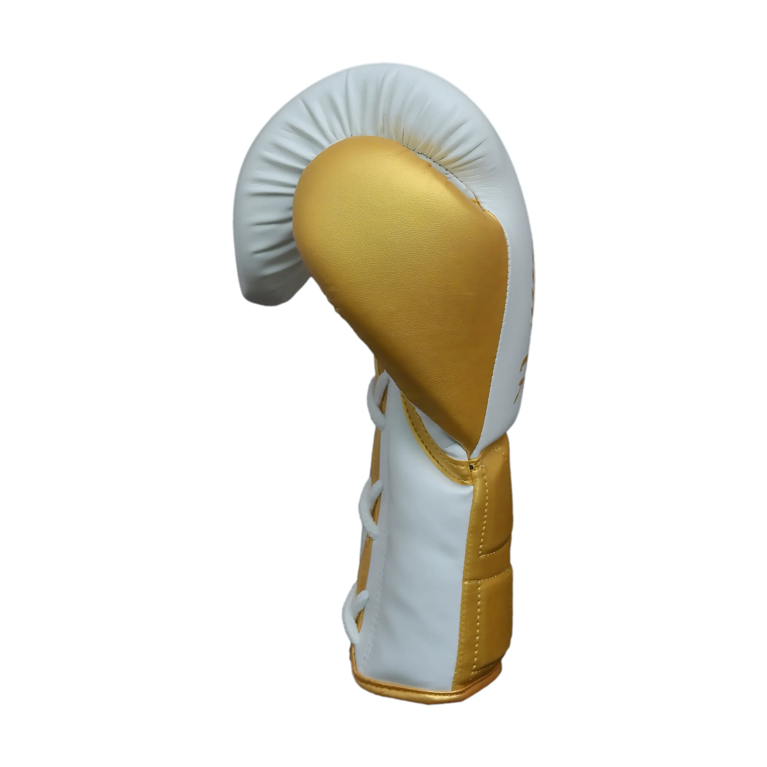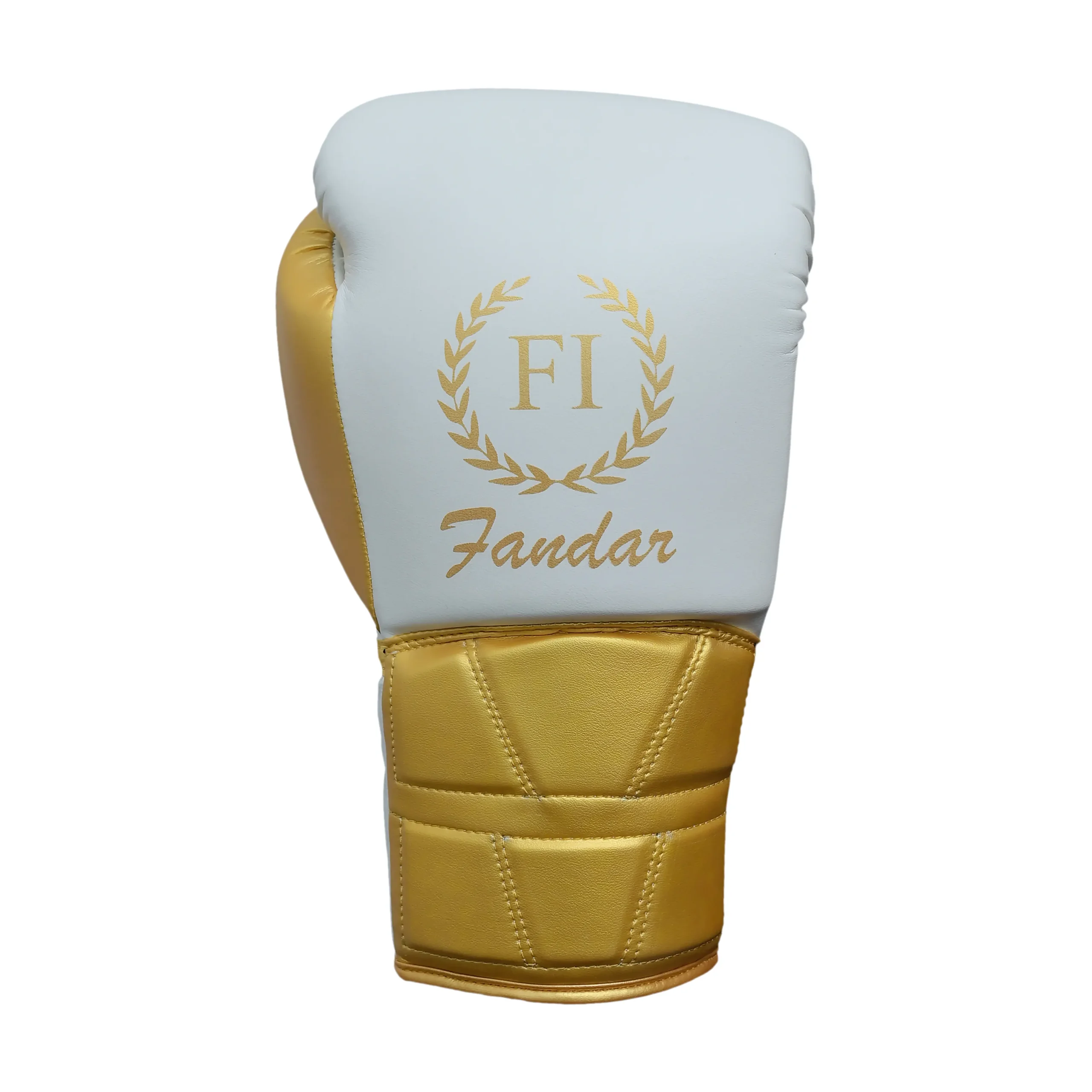 In summary, the Fandar White & Gold Lace-Up Boxing Gloves deliver a perfect combination of comfort, protection, and premium style. As White Gold Lace-Up Boxing Gloves, they feature ergonomic design, padded protection, and secure lace-up closure, helping athletes train, spar, and perform at their peak.