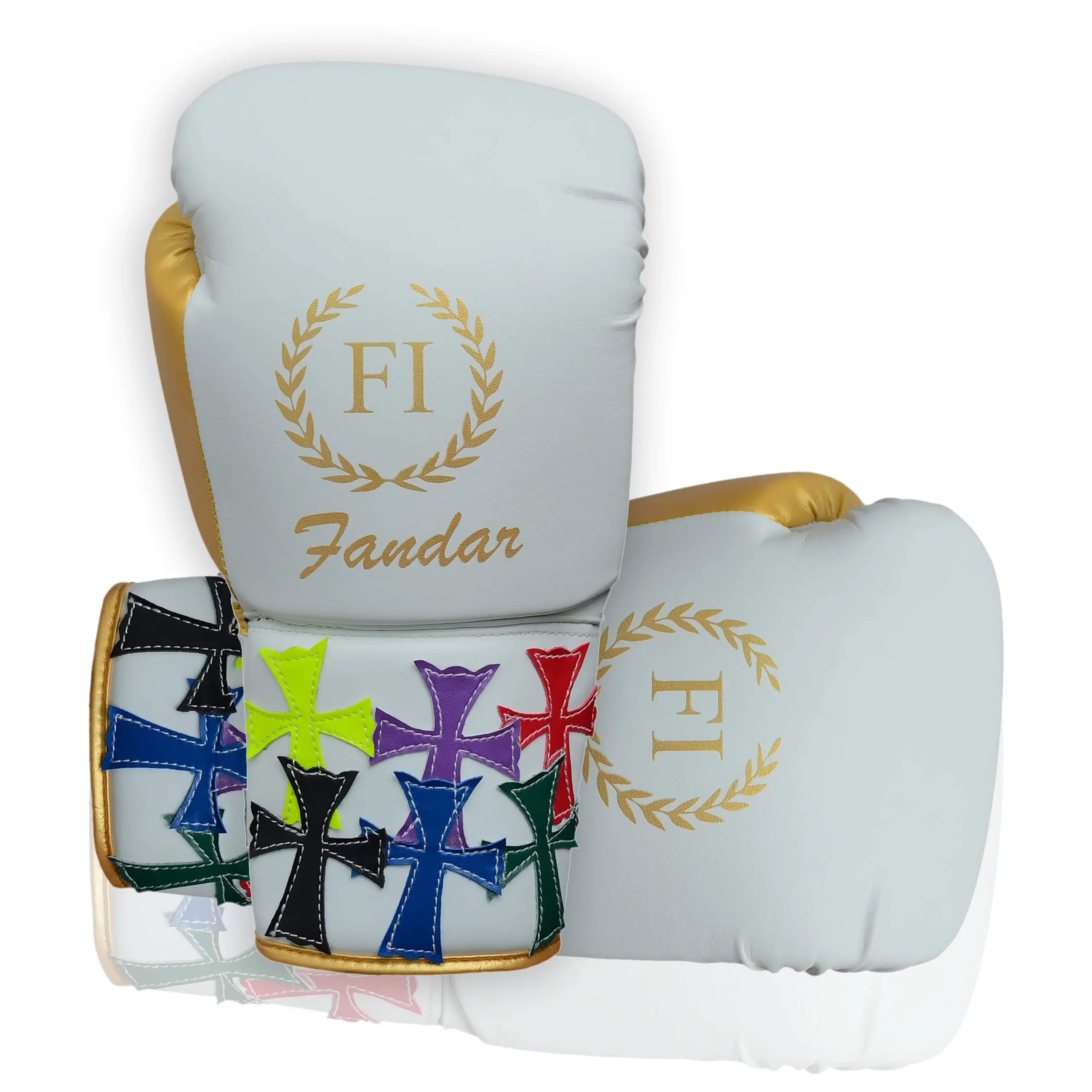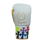 The White Gold Boxing Gloves with multi-color cross detailing by Fandar International represent the perfect blend of premium craftsmanship, performance engineering, and artistic styling. These gloves are built for serious athletes who value quality gear that performs flawlessly while standing out visually in the ring or training environment. The white and gold color combination delivers a bold, luxurious look, while the vibrant multi-color cross patches add character and originality.