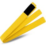 Symbolic Design: The vibrant yellow stripe against the clean white background represents a significant step on the path of karate mastery.